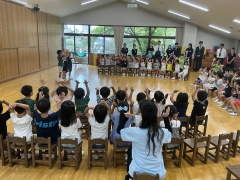 全園児で集う朝の会に始まり、3学年各クラスの活動を見ていただきました。