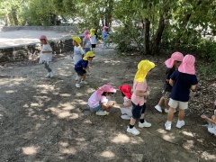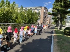 年長さくら組がお兄さん、お姉さんとして年中たんぽぽ組や年少すみれ組の手を引き、頼もしくつれて行ってくれました。