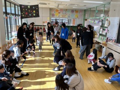 その後、親子で各チームに分かれて、ゲームをして遊びました。子どもたちはお家の方と一緒にするゲームに大盛り上がり!「頑張れ!」「早く早く!」と子どもたちも保護者の方も一緒に応援し合いながら楽しみました。3学年の親子が楽しく交流するとても良い機会となりました。3学期も縦割り保育が残すところ3回となりました。残り少ないなかよし会も皆で楽しみながら、他学年とより交流を深め、1年を締めくくりたいと思います。