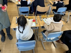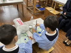 年中児の皆さまには、「おんがくあそび」「えいごあそび」「えほん」「くっきんぐ」「さいえんす」「えのぐあそび」の6つの体験授業の中から1つをお選びいただき、ご参加いただきました。