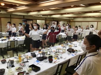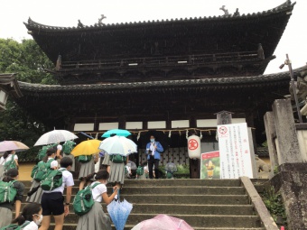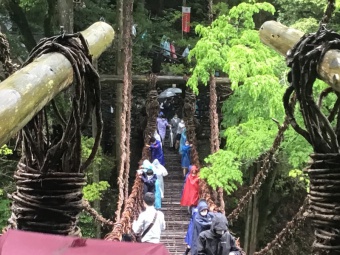 2日目は金刀比羅宮を参拝し、うどん体験をしました。本殿までの道のりは少し疲れましたが、遠足での山登りの成果が出たようにも思います。うどん体験では楽しく、元気にうどんを作ることができました。その後、かずら橋、桂浜と観光をしました。雨でしたが、恐る恐るかずら橋を渡しました。雨の日の桂浜は波が高く音の迫力までありました。そして3年ぶりの城西館で友だちとの絆を深めました。