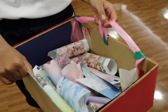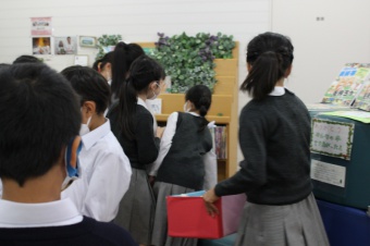 1つ目は「朝の低学年の教室に読み聞かせをお届けすること」2つ目は「こいのぼりまつりをすること」です。和紙で作成した「運よ来い来いコイみくじ」の中からおみくじが出てくれば大当たり。そこに書かれた本を借りるといいことがあるかも。みなさんに幸せをお届けするために図書委員会一同、力を尽くします。