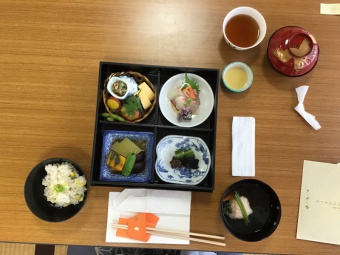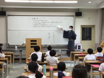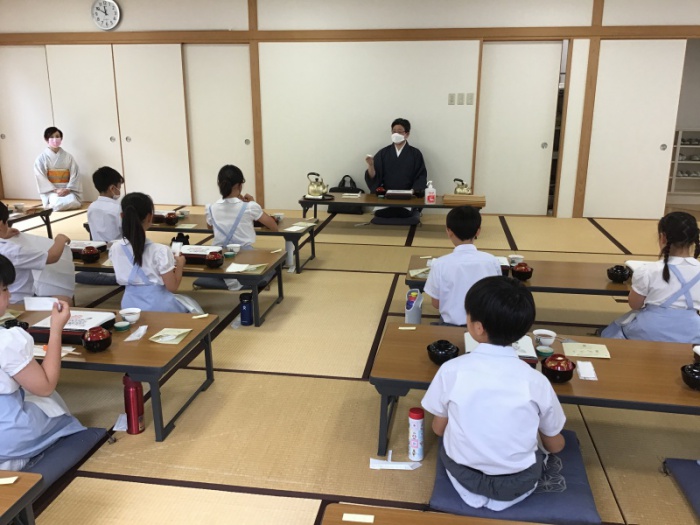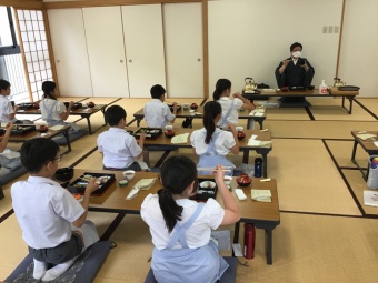 6/1(水)5年生は、日本文化で「食事の作法」を学習しました。自然界の生命をいただき、自分が生かされていることへの謙虚さや感謝の心を大切にしながら、作法や心のあり方を食育から学びました。また、実際に松花堂弁当をいただきながら、お箸や懐紙の扱い方も学びました。