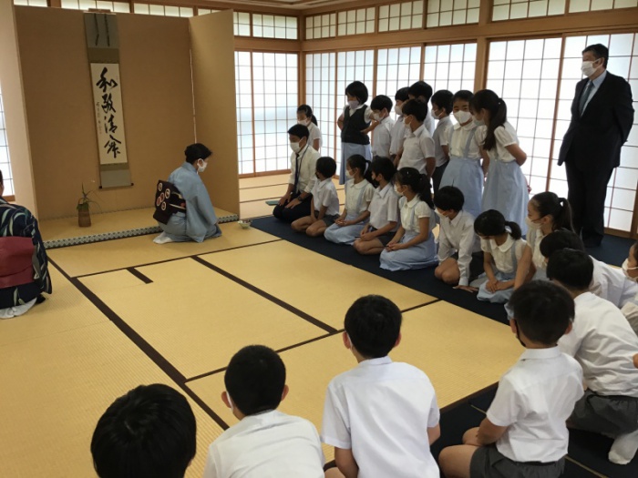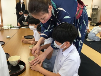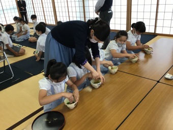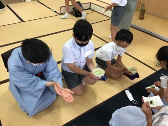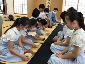 6月6日(月)に、4年生は、日本文化で「裏千家茶道」について学び、実際に体験しました。