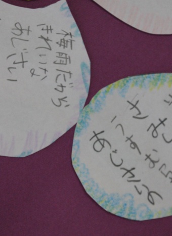 図書館前には、毎年恒例、一年生による『せんたくかああちゃん』に洗ってほしいものが干されています。今年は「ちきゅう」がありました。汚れを洗い流し、美しい惑星であり続けますように。