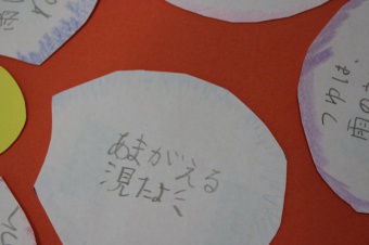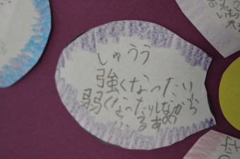 自分やみんなの思いを書いたもの、歳時記で調べたもの、自然や道具について書いたもの等が見られました。梅雨の中、生き生きと輝く自然や人の姿が多く、明るい気持ちにさせられました。