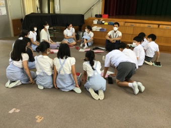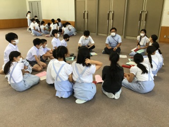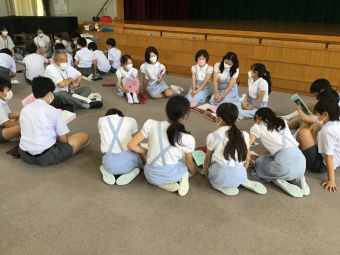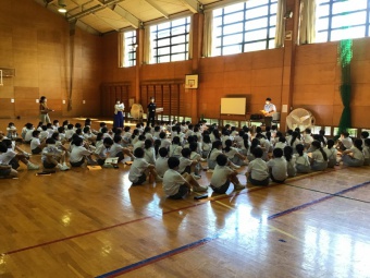 3年生~6年生は、7月16日より校外学習へ行きます。校外学習に向けて、本日の6校時に、結団式を行いました。