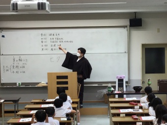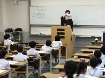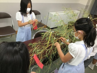 3年生は7月7日木曜日に小笠原流煎茶道の小笠原秀邦家元嗣にご指導いただき、星伝説と神話に田畑の収穫を神々に感謝する祭りが加わってできた、日本独特の七夕行事の成り立ちについて学びました。その後、五色の短冊に願いや目標を記し、こよりで笹に結びました。