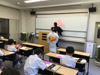 4年生は日本文化学習で秋の行事「重陽」について学びました。