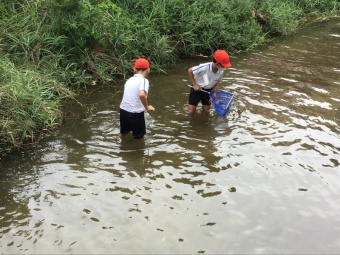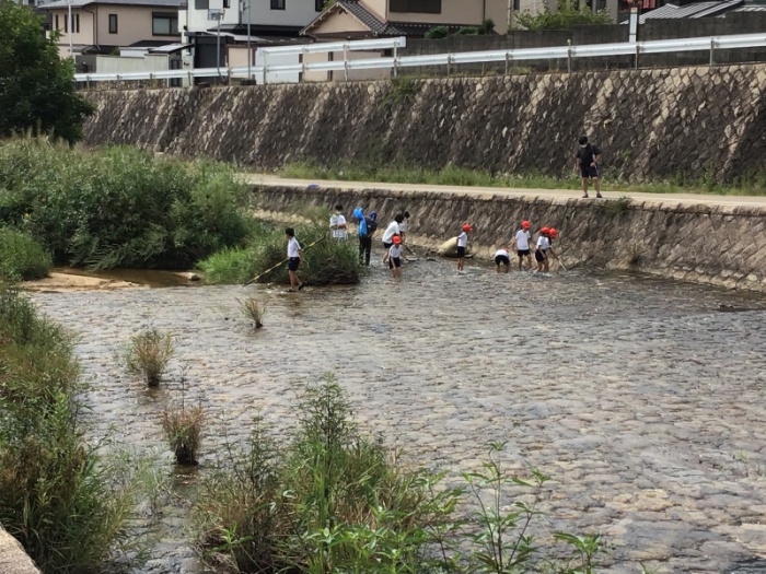 甲南小学校、甲南中高生、甲南女子中高生、甲南大学生と合同で住吉川の環境学習を行いました。生き物調べ、自然を詠む・かく、水質調査、ゴミ調べの4つの班に分かれました。一緒に住吉川に入ったり、iPadで発表の準備をすすめたり、協力して学習することができました。異年齢集団でお互いに刺激を受けながら楽しい1日になりました。