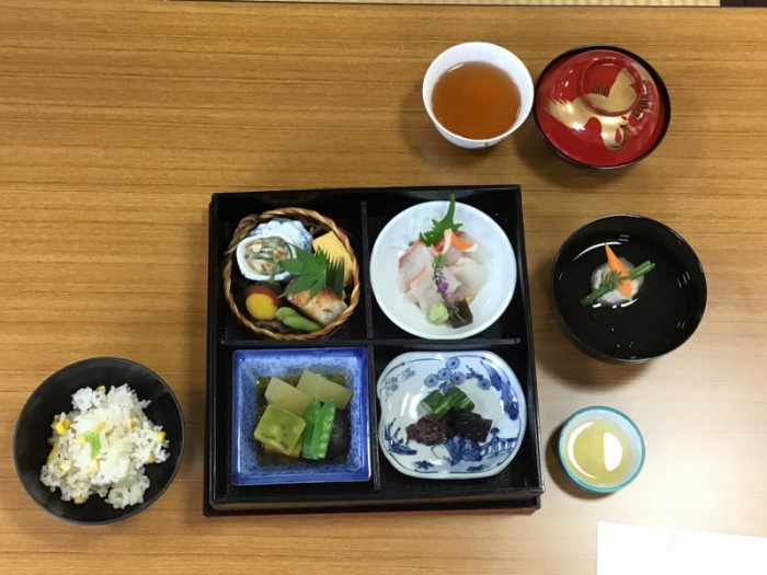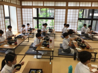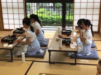 実際に松花堂弁当をいただきながら、お箸や懐紙の扱い方も学びました。