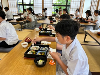 6月1日(木)5年生は、日本文化で「食事の作法」を学習しました。食事の作法を学ぶだけでなく、自然界の生命を食していることの大切さを再確認することができました。