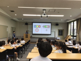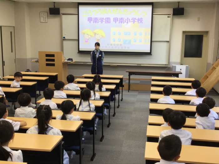 1・2年生は東灘警察署による交通安全教室を受けました。