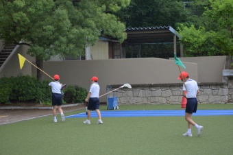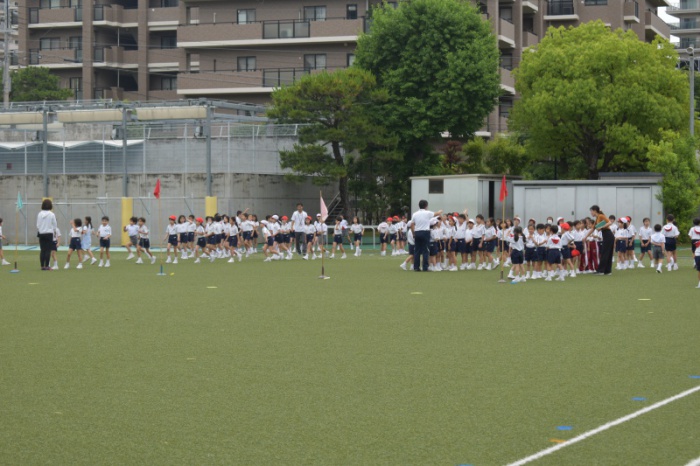 少し雨がぱらついた瞬間もありましたが、無事に運動場で行うことができました。