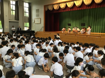 7月の音楽朝会のテーマは、校外学習の歌です。