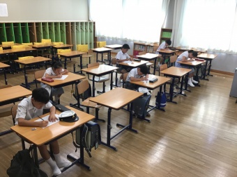 3・4年生は国語と算数、5・6年生は国語、算数、社会、理科の学習を行っています。これまでに学習した内容を復習し、学力の定着を図っています。