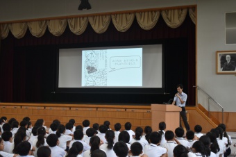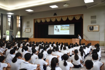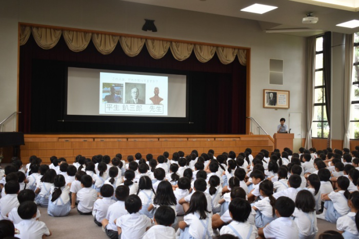 全校朝会で、甲南小学校の創立者である、平生釟三郎先生のお話を聞きました。