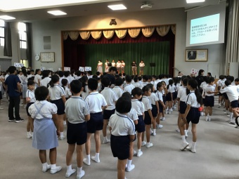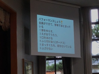 9月21日(木)の音楽朝会は、今月30日(土)の運動会に向けて、「運動唱歌」をカッコよく歌うことをめあてに、全校生で練習に取り組みました。1年生も早く歌詞を覚えて、本番でカッコよく歌えるように頑張ります。