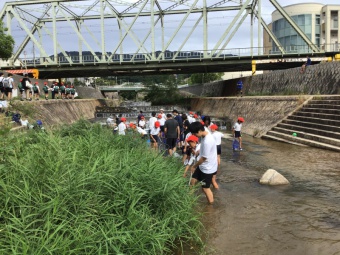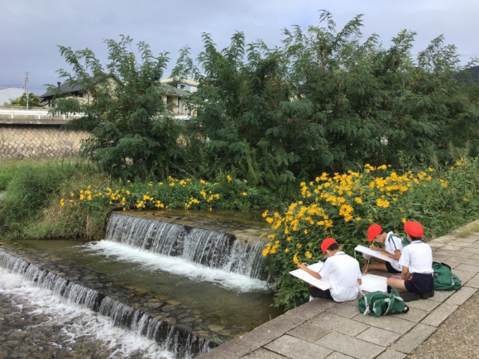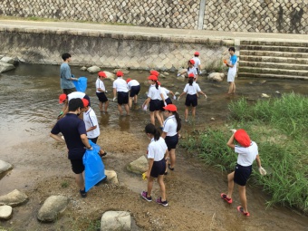 甲南三学園合同「住吉川の環境学習」は、甲南大学、甲南高等学校中学校、甲南女子中高等学校、甲南小学校の三学園の学生・生徒・児童が合同で環境について考え学ぶ行事です。9月23日(土)は、住吉川で「生物調査班」「住吉川の風景を詠む・描く班」「水質調査班」「ゴミ調べ班」の4班に分かれて学習しました。甲南小学校からは4年生の児童が参加しました。大学生・中高校生の皆さんと一緒に学ぶ貴重な機会となりました。