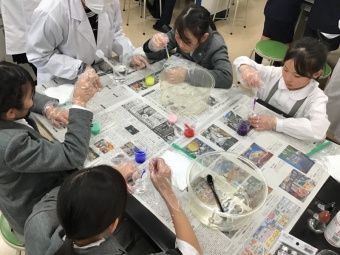また、人工イクラ作りでは、液をたらすだけで球体になることにびっくり!
