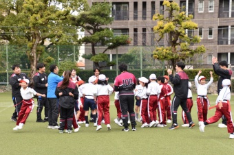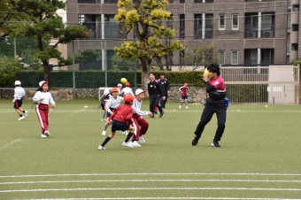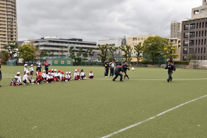 昨日に引き続き、甲南大学ラグビー部と2年生とで交流授業を行いました。