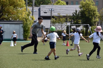 第四回目となる本日は、運動場にてリレー遊びを行いました。