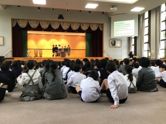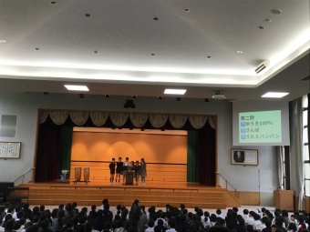音楽朝会は音楽委員が運営しています。これからも楽しい音楽朝会にしてくださいね。