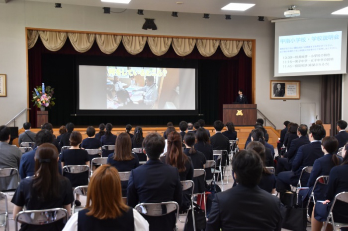 本日は小学校の説明に加え、甲南男子中学校、女子中学校の先生にもお越しいただき、それぞれの上級学校の説明もしていただきました。