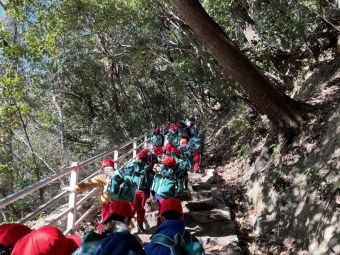 寒い中でしたが、気持ちの良いお天気のもと、みんなで励まし合い協力しながら最後まで登ることができました。一人ひとりの「諦めない気持ち」を育むことができたと思います。