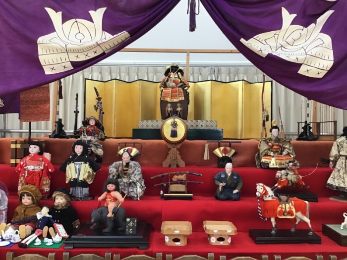 幼稚園では今、子ども達の健やかな成長を願い、鯉のぼりを揚げて五月人形を飾っています。