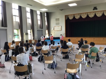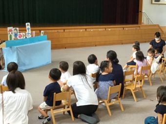 始めに講堂で人形劇(ペープサート)「浦島太郎」を見ていただきました。一生懸命見てくれて、先生達はとても嬉しかったです。