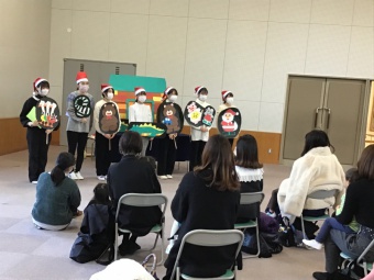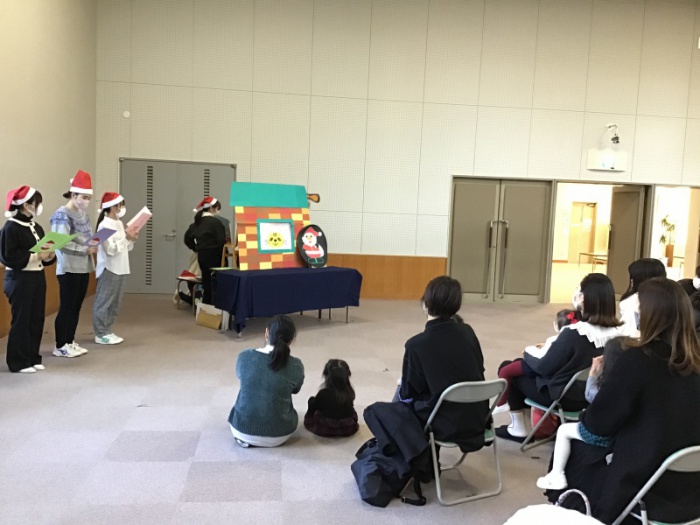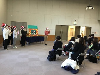 甲南女子大学ボランティア部の方が来てくださり「まどからのおくりもの」という楽しいペープサートをしてくださいました。