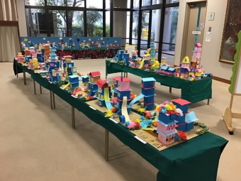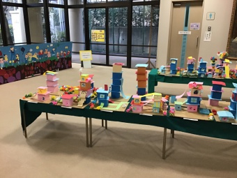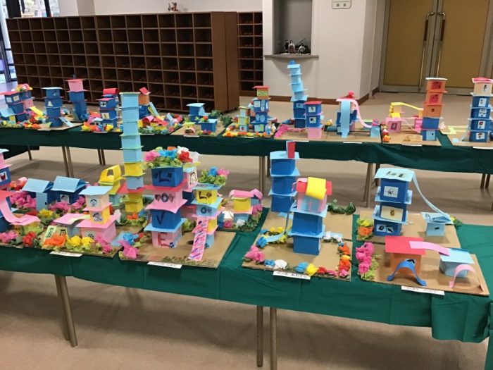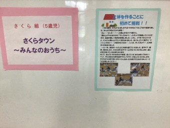 さくら組 立体製作「さくらタウン〜みんなのおうち〜」を展示しています。