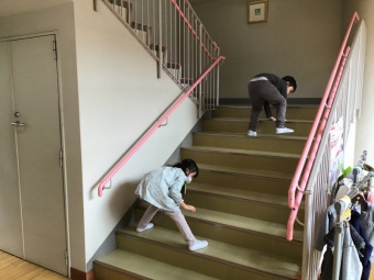 年長2人が階段を上から下まで拭きました