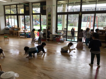 床もピカピカに(年少組)