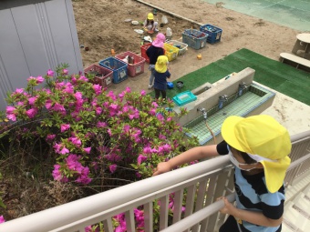 ツツジで色水作り