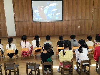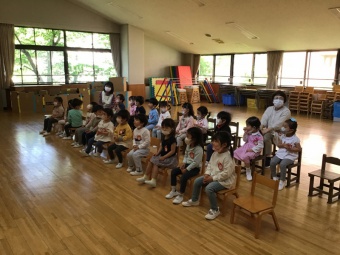 今日は一足早い、端午の節句の会をしました。コロナ禍なので、クラス毎に遊戯室で動画や5月人形を見て楽しみました。そして、ちまきを食べる代わりにお土産のお菓子を持ち帰りました。