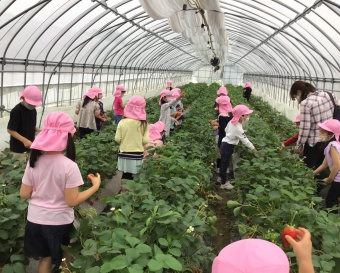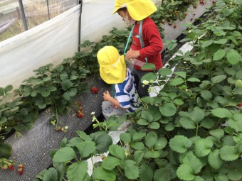 今日は苺狩りへ行ってきました。コロナ禍でなかなか遠足に行けない日々が続いていましたので、久しぶりにバスに乗って遠足へ行き、子ども達もとても楽しそうでした。