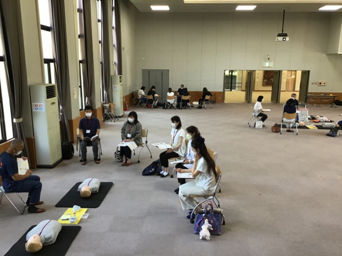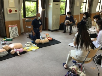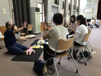 DVD視聴後、心肺蘇生法・AEDの実技講習を受け、赤ちゃん・子ども・成人それぞれの人形を使っての学びは、万が一の対応にとても役立ったことと思います。