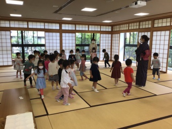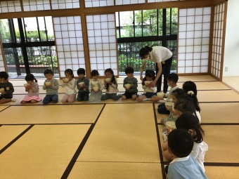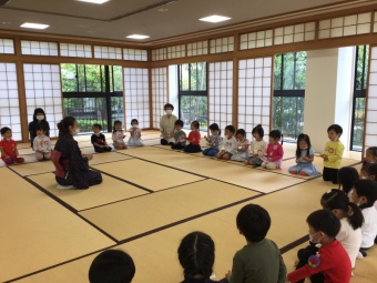 ”和室に来たら、お母さん座り(正座)”が子ども達の中でも意識できるようになり、心を落ち着けて過ごせるようになってきています。久しぶりに来られたお手伝いの先生も子ども達の姿に驚かれており、成長を感じることができました。