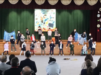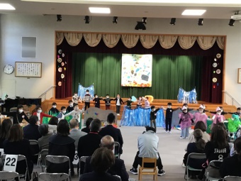 予行の時よりも、動きもセリフも歌もグレードアップし、3クラス共に一番良いところを見ていただけた発表会になりました。