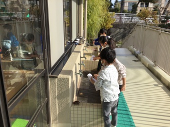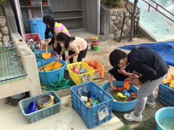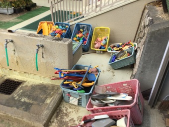 さくら組は外のおもちゃも洗いました