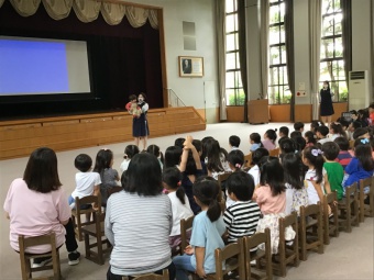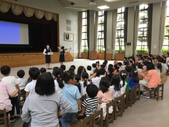 今日は東灘警察の方に来ていただき、交通安全教室を行いました。また、保護者の方にもより意識を持っていただくため、全学年の保護者にも参加いただきました。