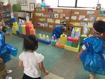 「何味にしますか?」「マヨネーズはかけますか?」とお店屋さんになりきってやり取りを楽しんでいる様子の子ども達でした。