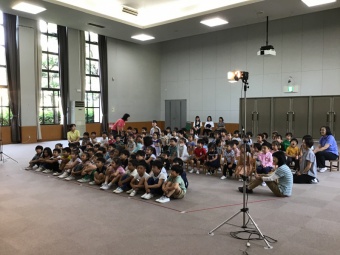 始まる前から人形劇のセットに興味津々の子ども達。さっそくお話が始まると、手を叩いたり身体を揺らしたりして人形劇の世界を身体全体で楽しんでいる様子でした。