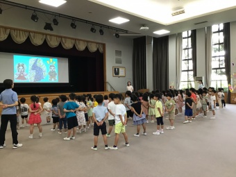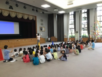 縦割り保育「なかよし会」のチームで集まり、たなばたの由来についての楽しい動画「たなばたえいが」を見ました。楽しいたなばたクイズもあり、とても盛り上がりました。