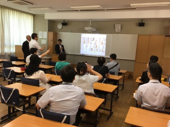 8月2日 神戸市内の小中学校を視察し、教育環境視察や意見交換を通じて日本の教育現場を見学し、意見交換を行うという目的で、湘郡未来実験学校より、校長先生・副校長先生はじめ10名の中学・小学校の幹部の先生方と、神戸市企画調整局の方々3名の方が本校園に視察に来られました。