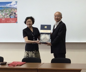 創設者平生先生の教育理念と、本校の教育実践に深く興味を示され、有意義な一時だったとの感想をいただき、最後に記念品もいただきました。