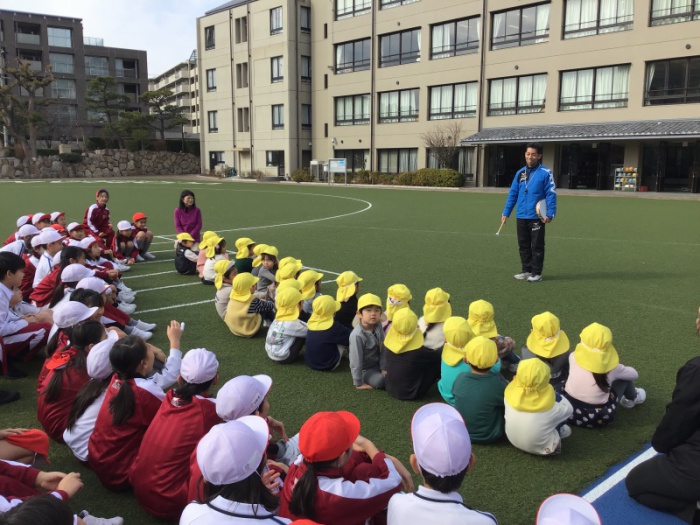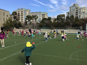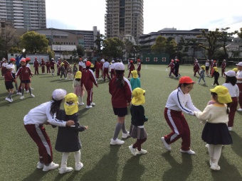 今日は、4年生とたんぽぽ組で一緒に、小学校の運動場で遊びました。