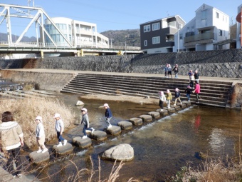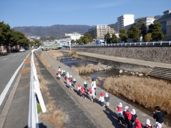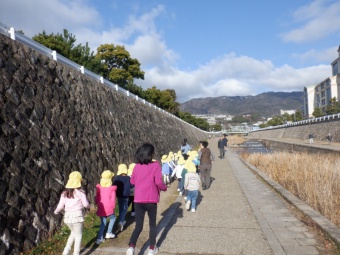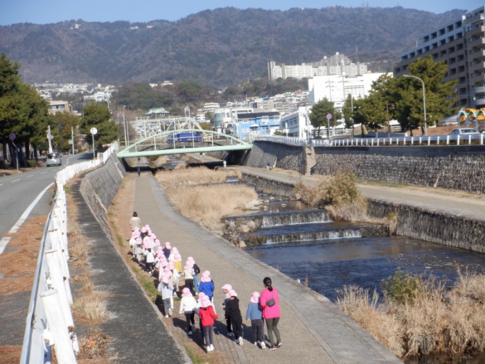 年長さくら組 帰りは、住吉川を見ながら歩いて帰りました